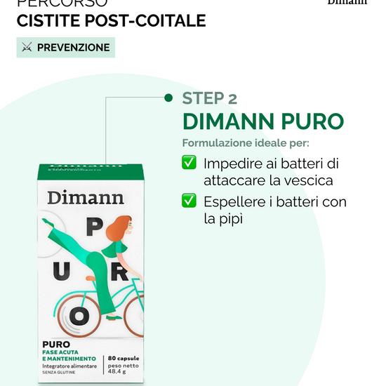 Dimann Puro: un integratore alimentare naturale a base di D-Mannosio Puro, principio attivo utile per impedire ai batteri di attaccare le pareti della vescica.